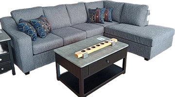 Disponible en tissu gris et bleu