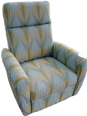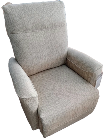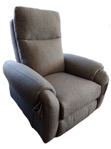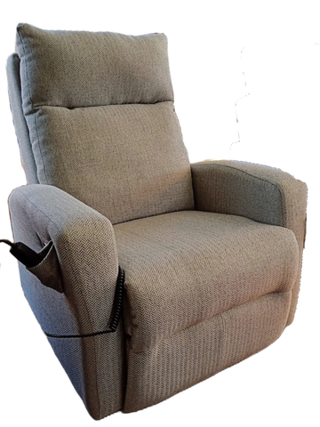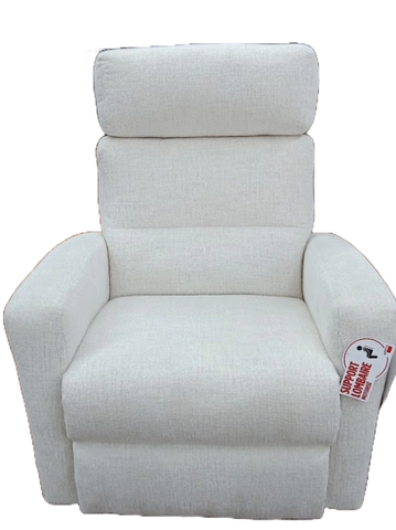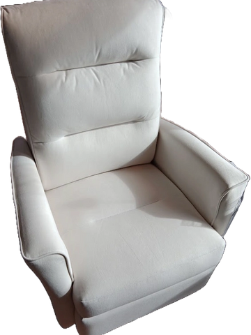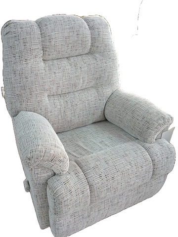 Disponible en tissu gris pâle. Aussi en vinyl beige et polyester brun.